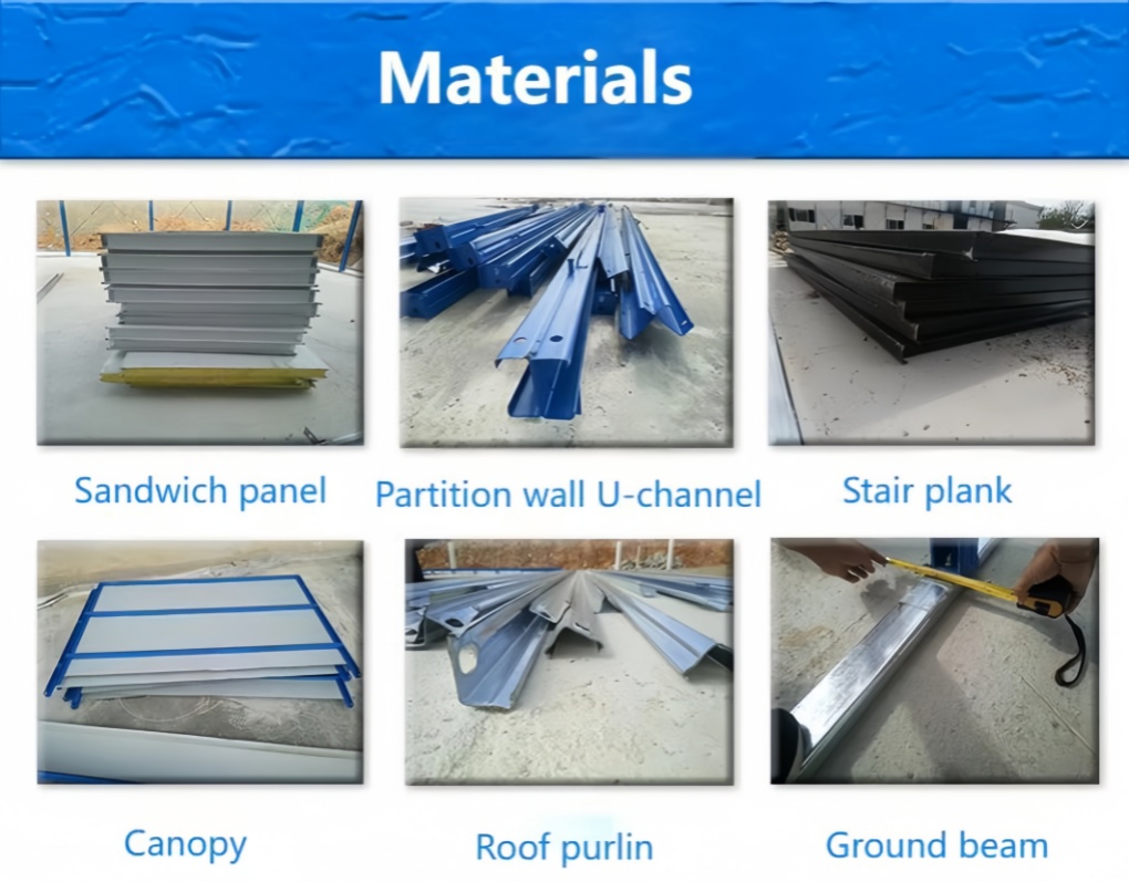 A1: They are typically made of steel frames, sandwich panels, and insulated roofing systems.