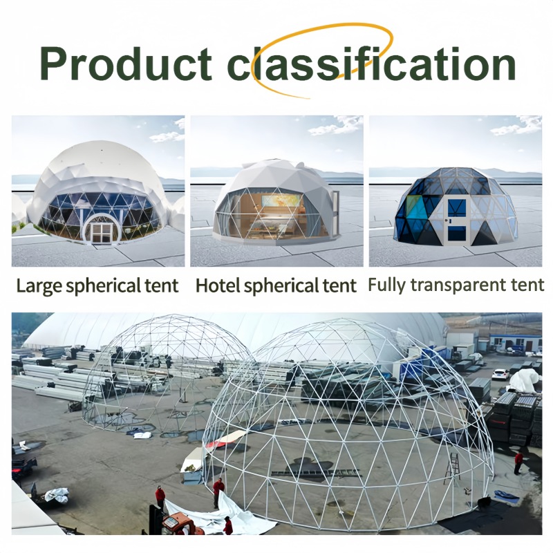The Steel Frame Dome Tent is a modern, waterproof and high-strength outdoor structure, built with a durable galvanized steel frame and covered with weather-resistant PVC material. Its signature spherical shape offers excellent wind resistance, stability and spacious interior space, making it highly suitable for both commercial and personal use. Dome tents can perform a variety of regular functions and are widely used in events, hotels, luxury camping and other scenarios.