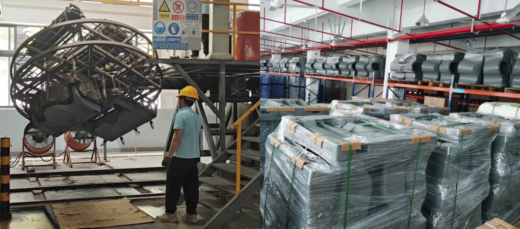 Rotational molding is a process where HDPE powder is evenly heated and rotated inside a mold, forming a seamless, one-piece structure. Unlike injection molding or panel assembly, rotomolding creates products with uniform wall thickness and no welding joints.